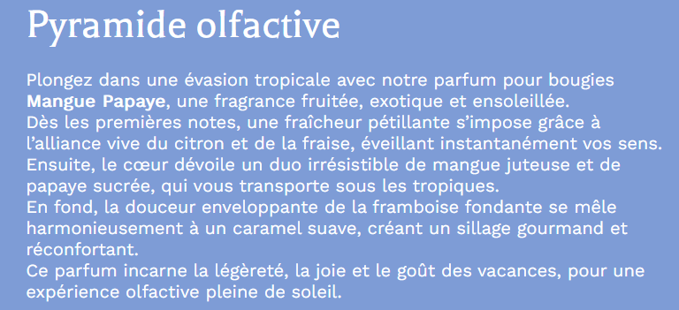 Toutes nos bougies contiennent environ 150ml de cire parfumée.